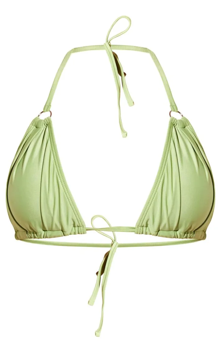 Soak up the sun in style with this olive ruched triangle bikini top. This bikini top is brought to you in an olive hue with ruched detailing and triangle cups, what’s not to love? This bikini top will have all eyes on you. Style this with the matching bikini bottoms, sandals and accessories for a flawless finish.