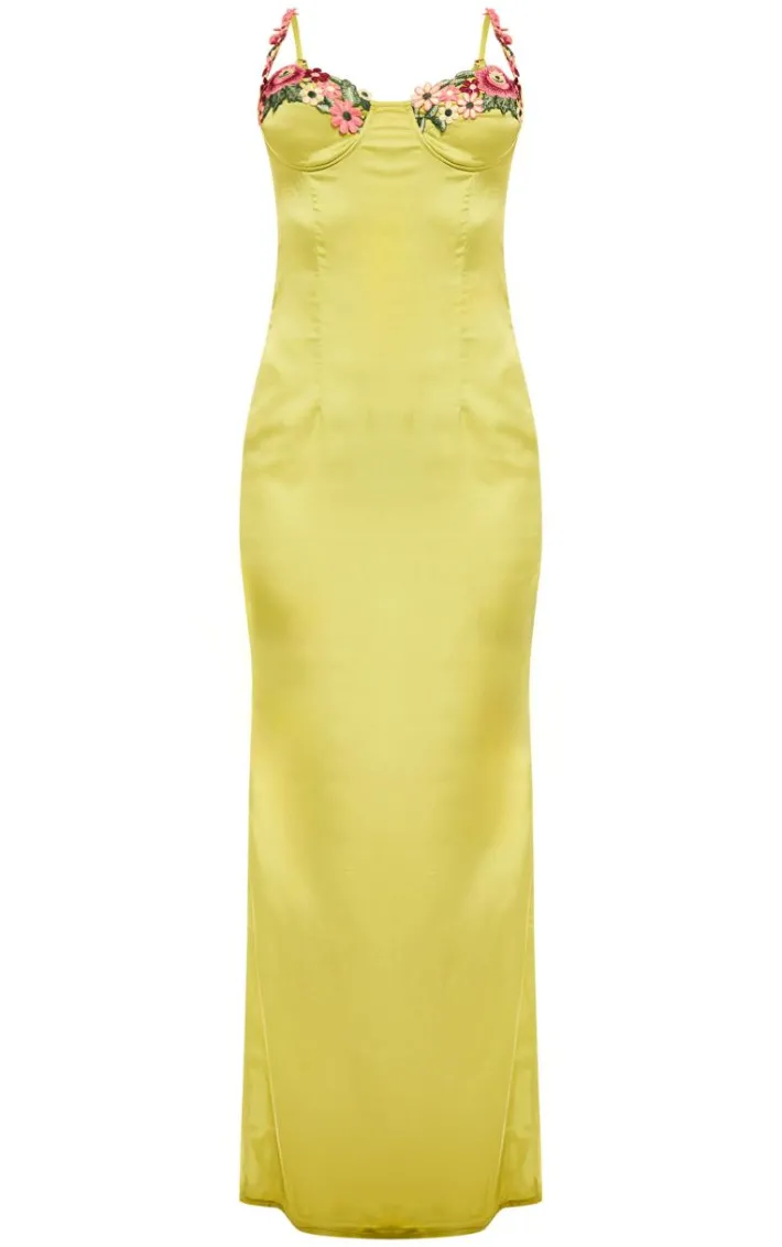 Look the best dressed for your next event in this olive satin floral applique underwired strappy maxi dress. Brought to you in an olive hue satin material with a floral applique detail and underwired cup design, this strappy maxi dress is at the top of our wish list. Style with your fave heels and simple accessories to steal all the stares.