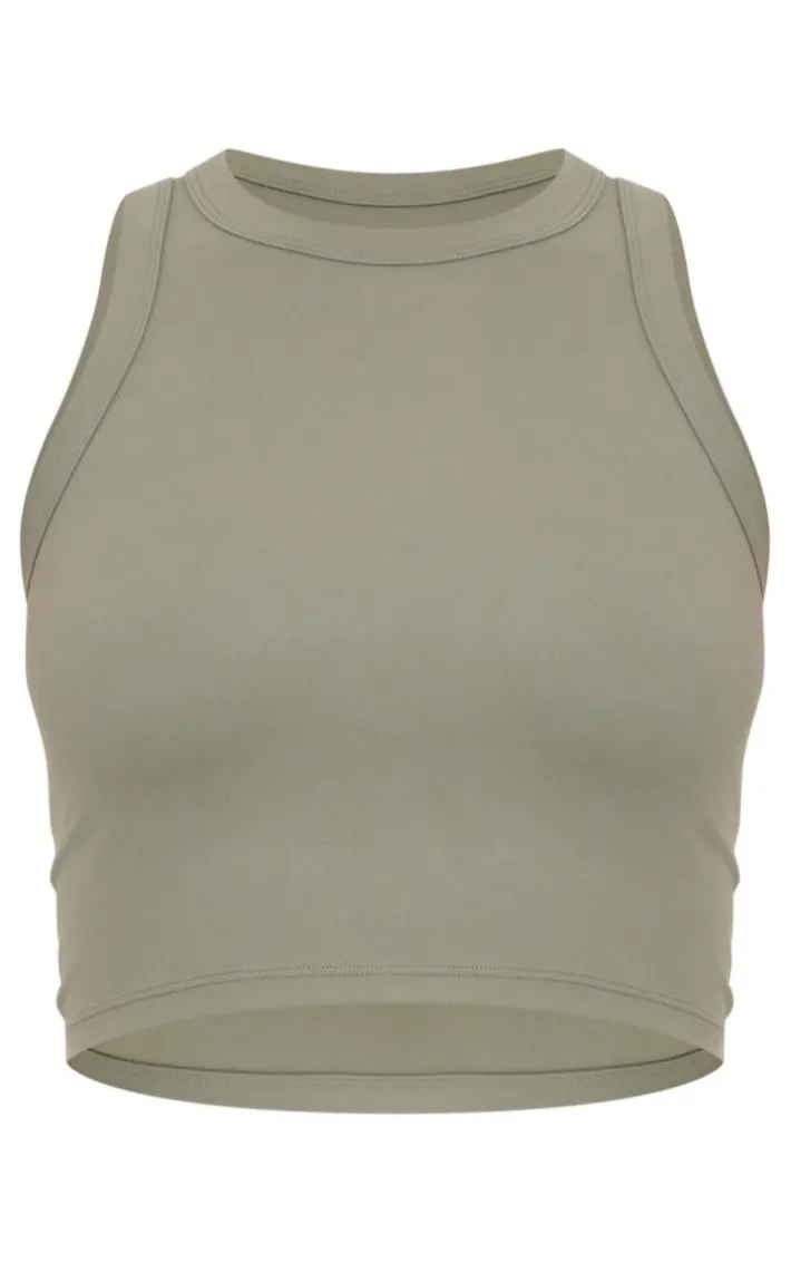 Get maxing out your workout wardrobe with this olive sculpt cropped gym racer top. Brought to you in an olive hue sculpt material with a racer neck design and a cropped fit, what more could you ask for? Team this cropped gym top with matching hue shorts, chunky sneakers and your go-to accessories for a fierce gym-ready ‘fit that is sure to earn you some serious style points on your next workout doll.