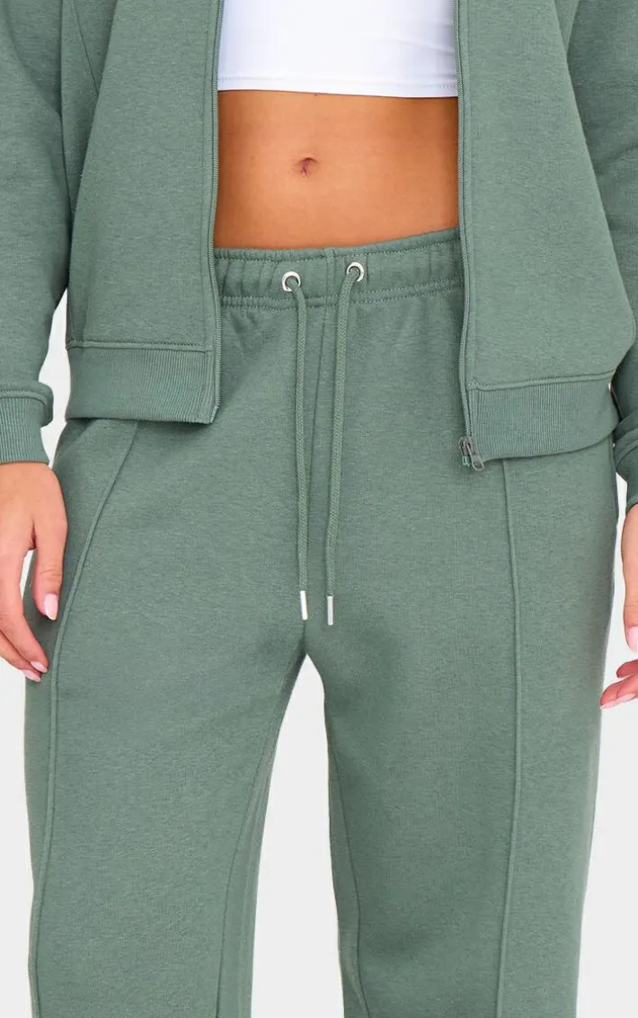Elevate your off duty look with these olive seam detail wide leg sweatpants. Brought to you in an olive hue sweat material with a seam detail and wide leg design, these sweatpants are a must have. What’s not to love? Style with the matching Sweatshirt and fresh kicks for a chic finish.