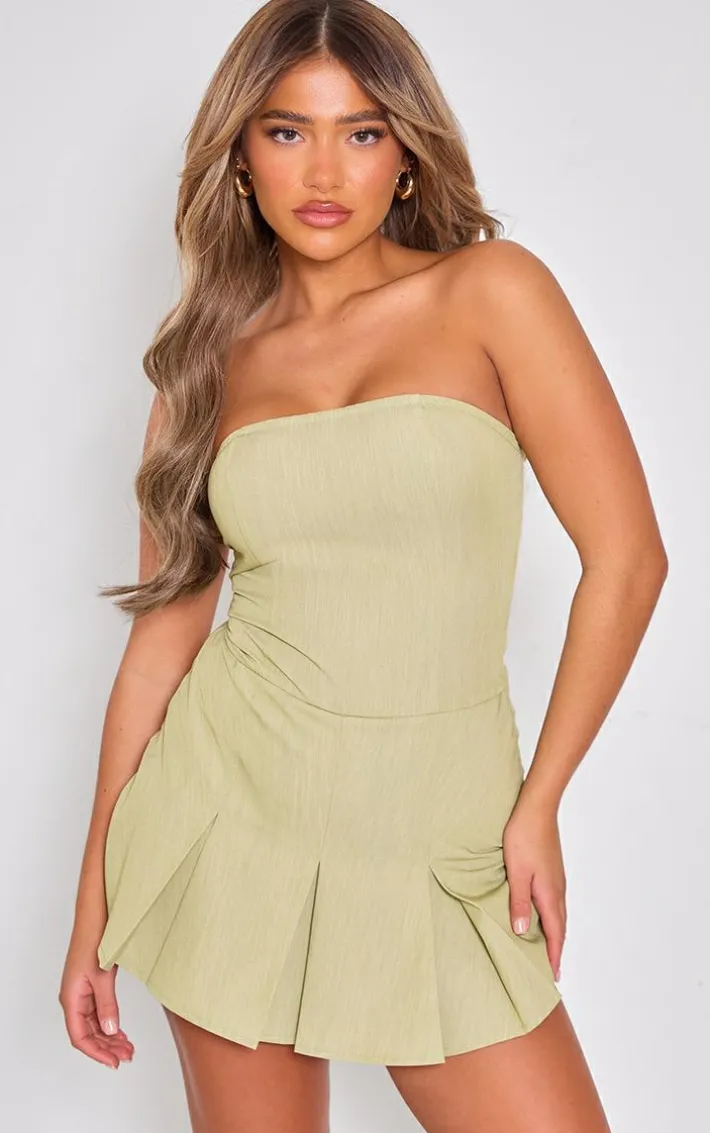 This olive tailored woven bandeau skort romper is here to solve all of your weekend wardorbe dilemmas. Brought to you in an olive hue woven material with a bandeau neckline and a flattering tailored fit, how can you not fall in love? Style this skort romper with knee length heeled boots and statement gold accessories for a look that will have eyes on you you all night long.