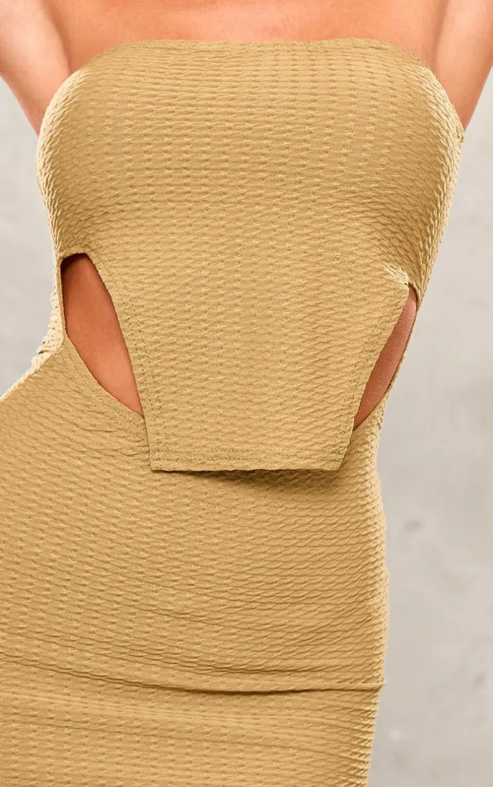 Give your new season wardrobe the instant chic upgrade it deserves with this olive textured bandeau stirrup hem bodycon dress, your weekend fit is finally sorted. This dress features an olive textured material with a stirrup hem design and a bandeau style, how could you not be in love? Style this bodycon dress with wrap around heels and statement accessories for a bold finish.