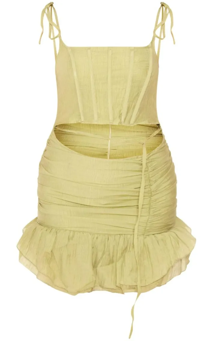 Got a special occasion pencilled into your diary? Well, we’ve got you covered with this olive textured tie strap corset asymmetric hem bodycon dress. Brought to you in an olive textured material with a tie strap and a corset design, how could you say no? This bodycon dress has an asymmetric hem that will have you setting trends wherever you step foot. For a flawless finish, pair with some clear heels and gold accessories. It’s everything we’re loving right now..