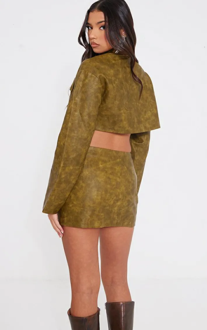 Make room in your new season wardrobe for this dreamy olive washed faux leather boxy cropped pocket detail jacket, it is perfect for your weekend plans and beyond. Made using an olive washed faux leather material with a boxy cropped style and a pocket detail, this jacket just went straight to the top of your hit list. Pair with the matching skirt, knee high heeled boots and a shoulder bag for a combo we’re crushing on.