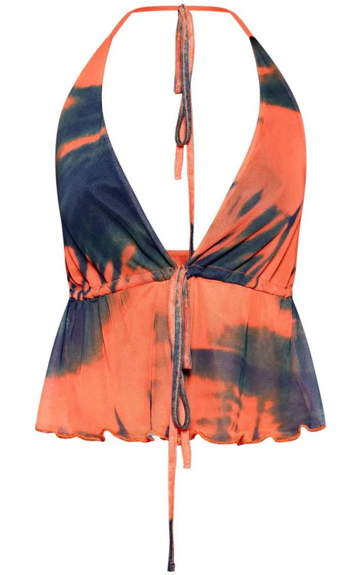 Brighten up your weekend wardrobe with this orange abstract print mesh halterneck top. Made from an orange hue mesh material with an abstract print and a halterneck design, how can you not be obsessed? Style this mesh top with the matching skirt, heels and gold accessories for a look that is sure to make you stand out from the crowd.