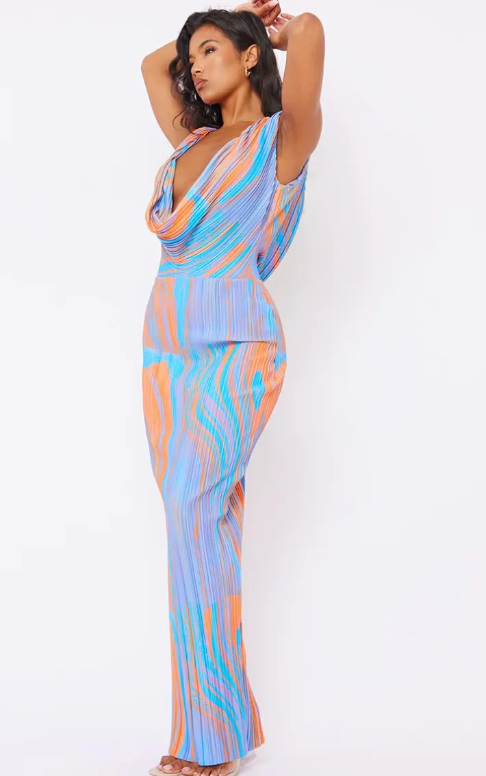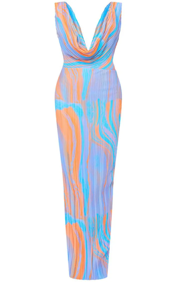 Get ready to have all eyes on you with this orange abstract print plisse cowl plunge maxi dress. Brought to you in an orange abstract plisse print material with a cowl plunge neckline and a maxi length, how could you say no? From your brunch dateor a date night with your significant other this maxi dress is the piece you need. Pair with your dreamy high heels and accessories for a look that we can’t get enough of.