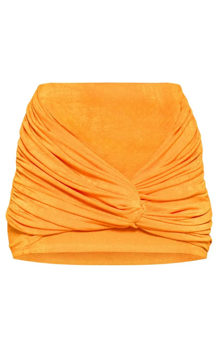 Brighten up your new season wardrobe with this orange acetate slinky twist front micro mini skirt. Brought to you in an orange hue acetate slinky material with a twist front design and a micro mini fit, how can you resist? Style this micro mini skirt with a bralet, heels and statement accessories for a look that is sure to make you stand out from the rest.
