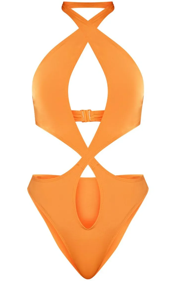 Take on your vacay the right way with this statement orange asymmetric strap cut out swimsuit. Made from an orange material with an asymmetric design, this is everything we’re loving and more. With it’s figure-hugging fit this swimsuit is sure to hug you in all the right places. With a cut out detail, what more could you want? To complete the look style this seamlessly with some gold accessories for a look that will secure you all the likes.