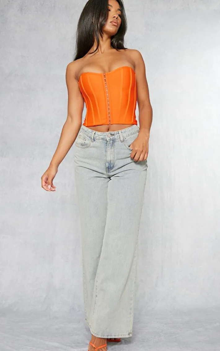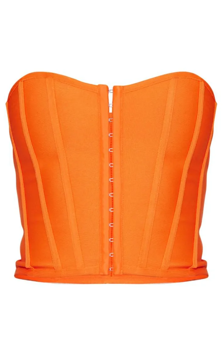 Calling all s who love to make a statement. Featuring an orange bandage material with a hook and eye detail and structured fit, we just can’t get enough. Team with bright wide leg bottoms and gold hoops for a combo that everyone is crushing on right now.