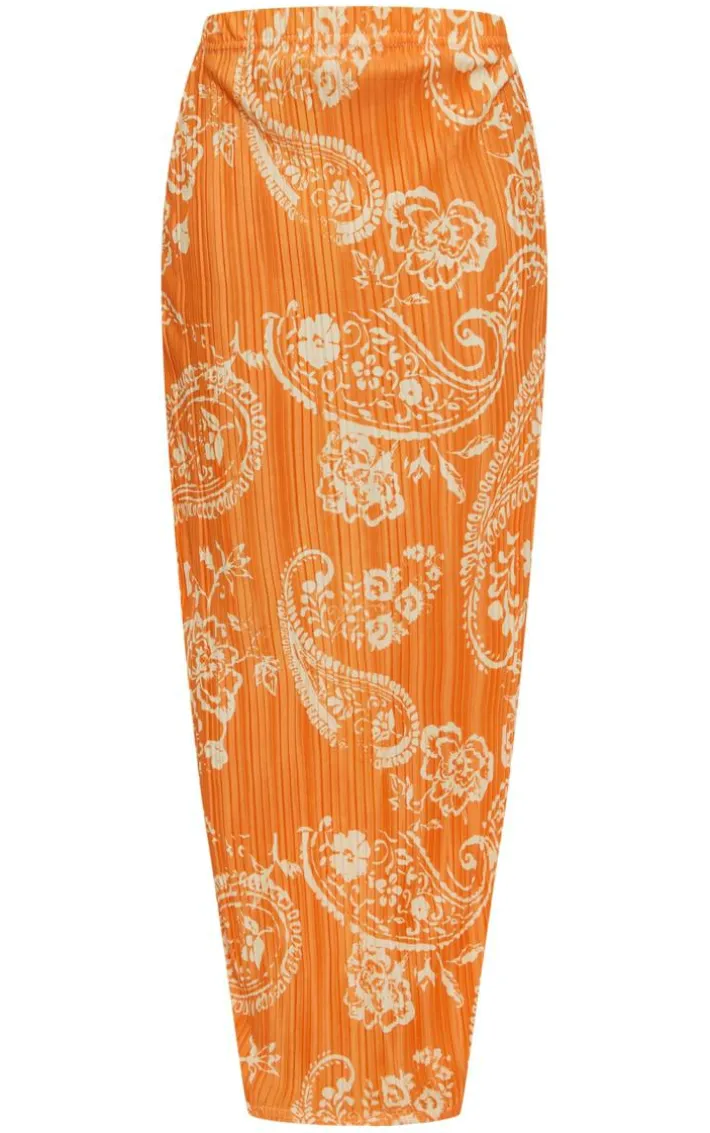 Give your new season wardrobe the upgrade it deserves with this orange blurred floral printed plisse maxi skirt, you’ll be showing off your glow whatever your plans. This maxi skirt features an orange plisse material with a blurred floral printed design and a maxi length, we’re seriously obsessed. Pair this women’s plisse maxi skirt with a bandeau top, slip-on heels and simple accessories for a combo everyone will want.
