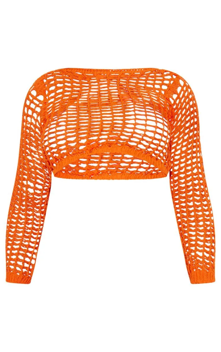 Heads will be turning with this orange crochet open knit long sleeve top. This unreal top is brought to you in an orange knit material with a crochet design that is bringing all the edge to your outfit of the day. This long sleeve top is perfect for those upcoming daytime plans. What are you waiting for? Shop the look by pairing it with some shorts and a bralette underneath, what more could you want?