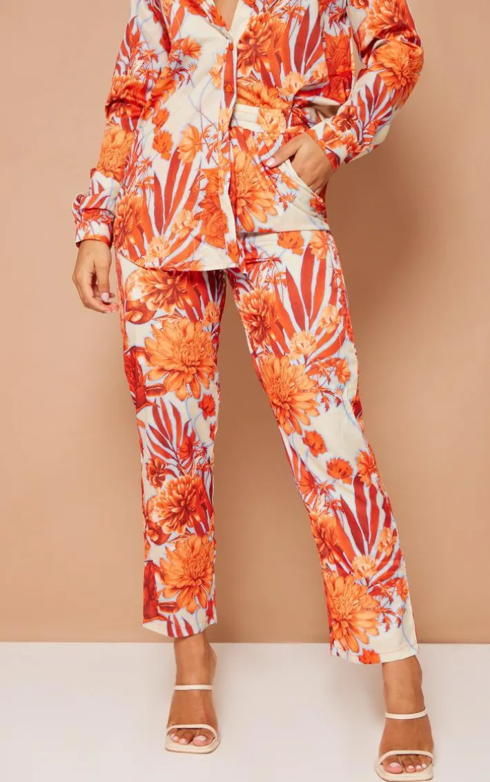 Bold prints are a must-have this season and we are loving this one. Featuring an orange floral print material with an elasticated waistband and pockets. Wear with the matching top and strappy heels for a look that is sure to get you noticed.