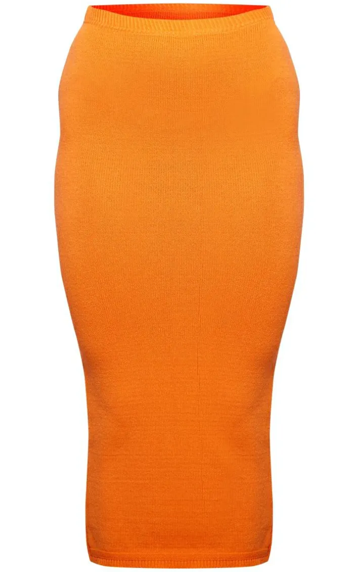 Take on the new season in style with this dreamy skirt. Featuring an orange knit material with a figure-hugging fit and a maxi length, what’s not to love? Wear with the matching crop top and bright accessories to steal the look.