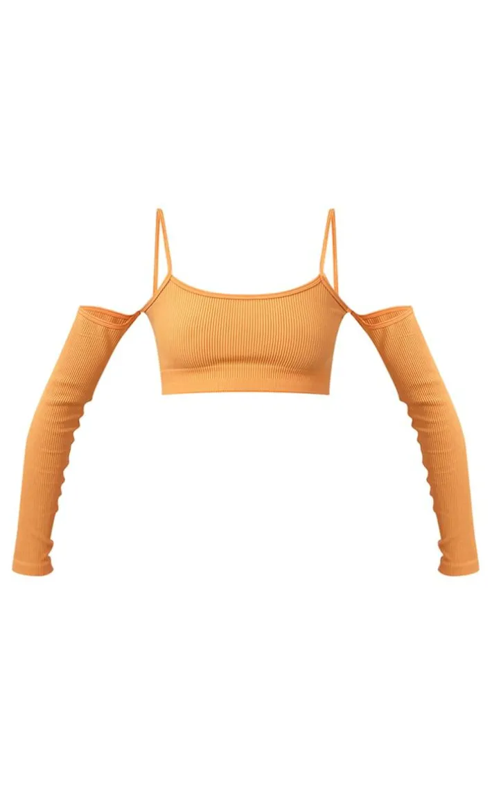 You off-duty wardrobe just got a whole lot better with this orange snatched rib cold shoulder crop top. this crop top is brought to you in an orange rib material with a contour design that will be showing off your shape in all the right places. With a cold shoulder detail and a cropped length, this top will become your new go-to. Team with some comfy shorts, a hat and a pair of your fave sneakers, we are obsessed.