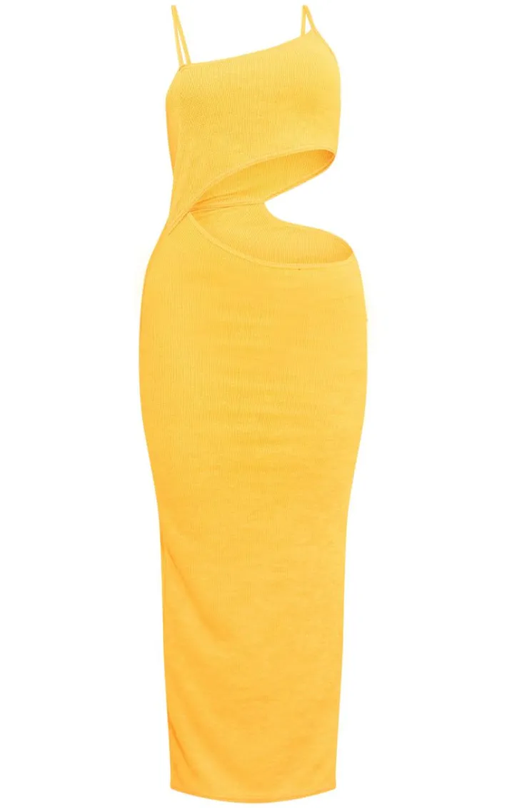 Brighten up your weekend wardrobe with this orange textured asymmetric strappy cut out midaxi dress. Brought to you in an orange hue textured material with an asymmetric strappy design and a cut-out detail, this midaxi dress is at the top of our wish list. Style with clear heels and gold accessories for a figure-flattering fit. It’s official, we’re obsessed.