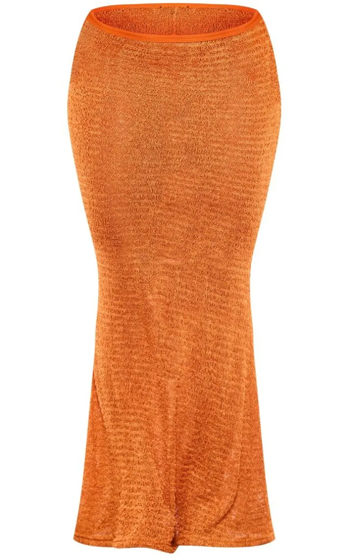 Prepare to stand out from the crowd on vacay with this orange textured fishtail beach maxi skirt. Made from an orange textured material with a fishtail design and a super flattering fit, what’s not to love? Perfect for nailing all the glam vibes, this beach maxi skirt is the ultimate cover-up. Simply add a matching hue bikini set, gold accessories and sandals for a dreamy finish.