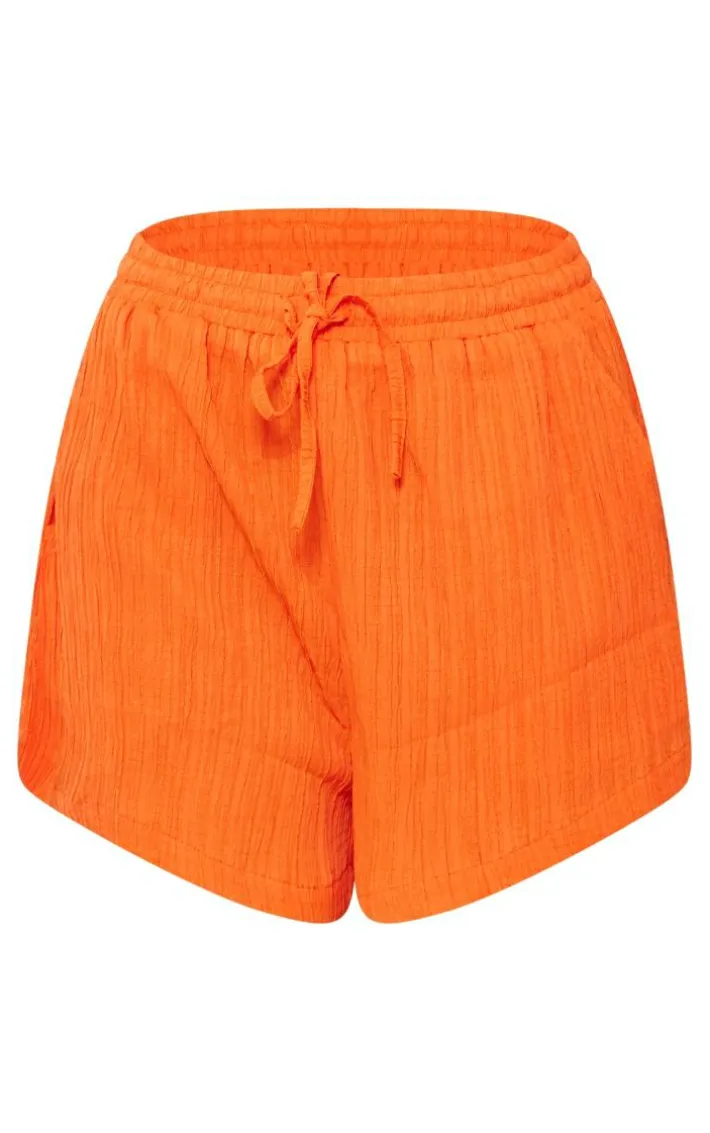 These orange textured oversized floaty runner shorts are sure to add some drama to your new season wardrobe. Brought to you in an orange textured material with an oversized fit that will have you feel seriously glam this season and beyond. Their floaty fit is perfect for those beach days. Team these runner shorts with the matching shirt and some comfy sandals, its a yes from us.