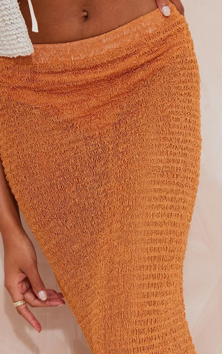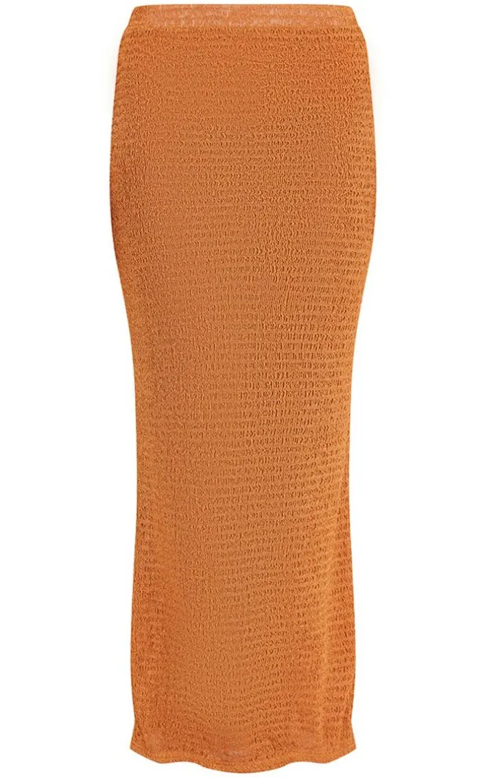 Your new season wardrobe wouldn’t be complete without this orange textured sheer midaxi skirt, it is everything we are loving for taking your look effortlessly from day to night. Made with an orange textured sheer material with a midaxi length and a figure-worshipping fit. Wear this midaxi skirt with a basic top, sandals and simple accessories for a flawless finish.