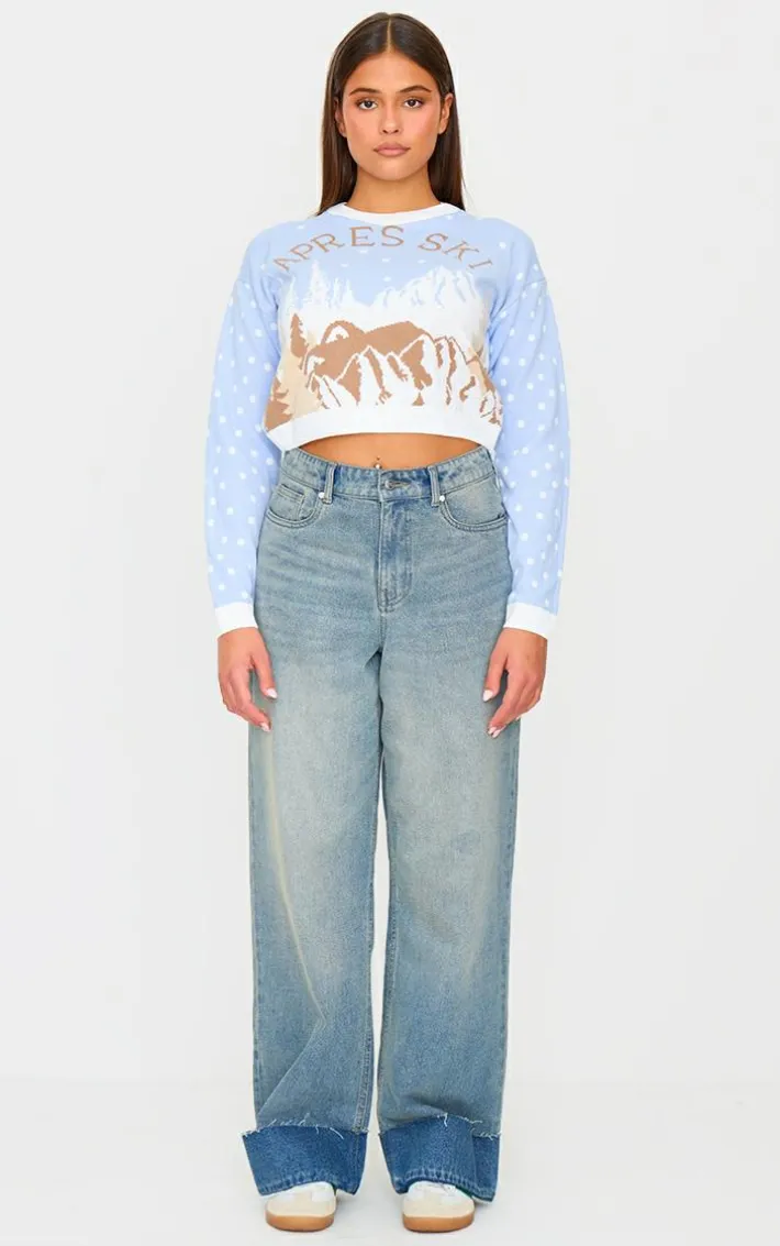 Elevate your look to new heights with this pale blue apres ski cropped christmas sweater. Brought to you in a blue material with a ‘Apres Ski’ design, what’s not to love? This Christmas sweater is perfect for those cosy nights in. Team with a pair of high waisted jeans and a pair of sneakers for a look we are loving.