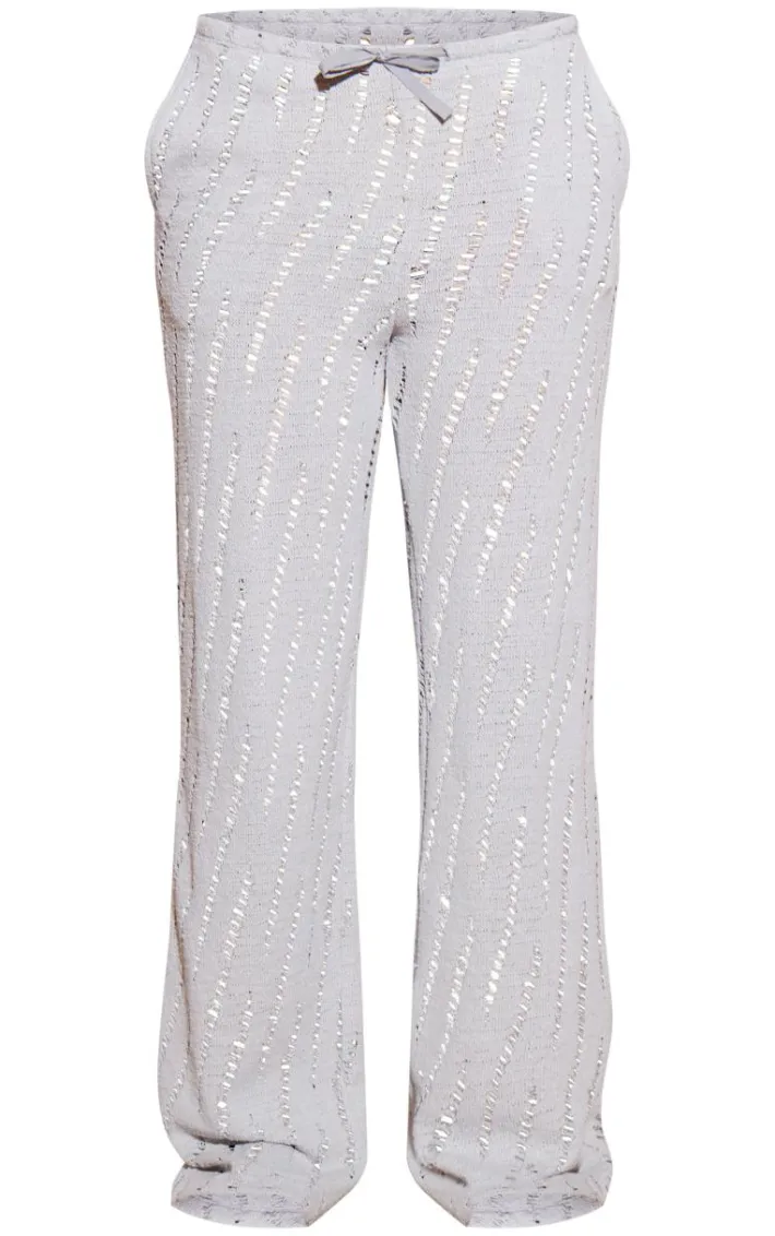 Get ahead of this season’s trends with these pale grey distressed knit drawstring waist pants. Brought to you in a pale grey knit material with distressed features and a drawstring waist, how can you resist? Pair these distressed pants with a white tee, sandals, and gold hoops for a look everyone’s obsessing over.