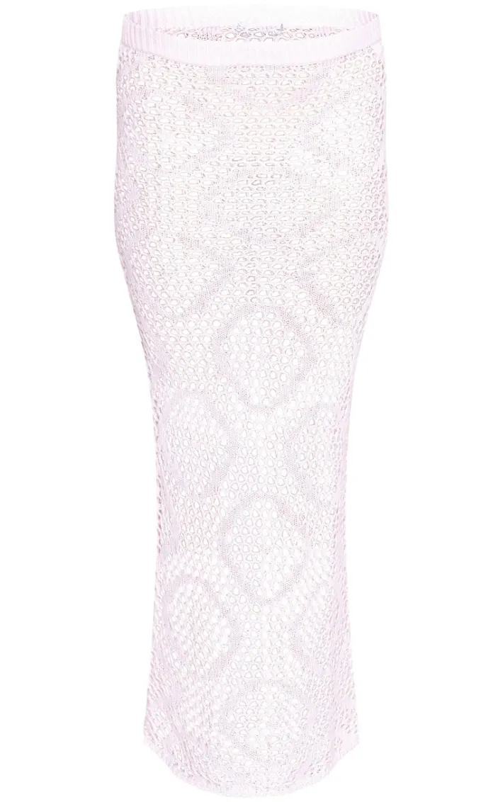 Bring the drama to your new season look wardrobe with this pale pink open crochet floral applique low rise maxi skirt. Made from a pale pink crochet material with a floral applique design and a flattering maxi fit, how can you resist? Style this maxi skirt with the matching bandeau, sandals and sunglasses for a look that is sure to steal all the stares.