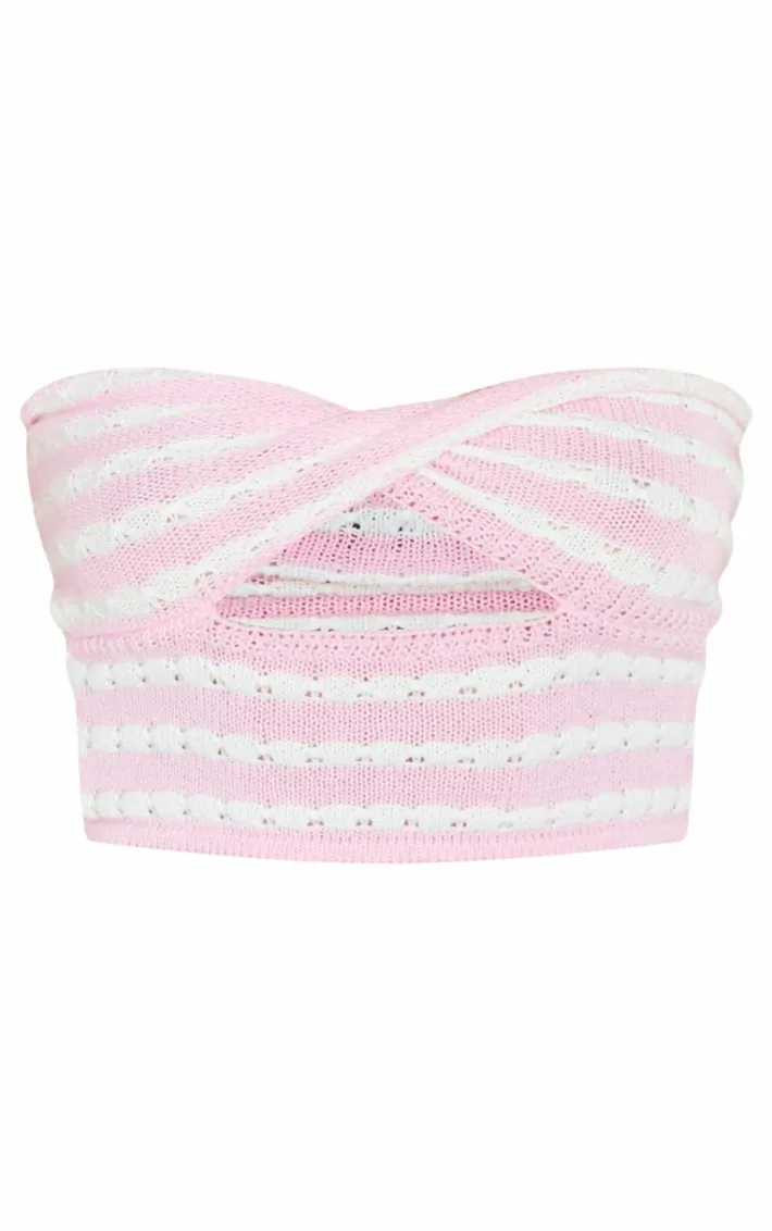 Add a pop of pink into your outfit of the day with this petite baby pink knit twist front stripe crop top, you’re sure to be earning all the compliments. This petite top features a baby pink knitted material with a stripe print and a twist front design, it’s a definite yes from us. Just add a denim skirt, heels and a mini bag for a look everyone will want.