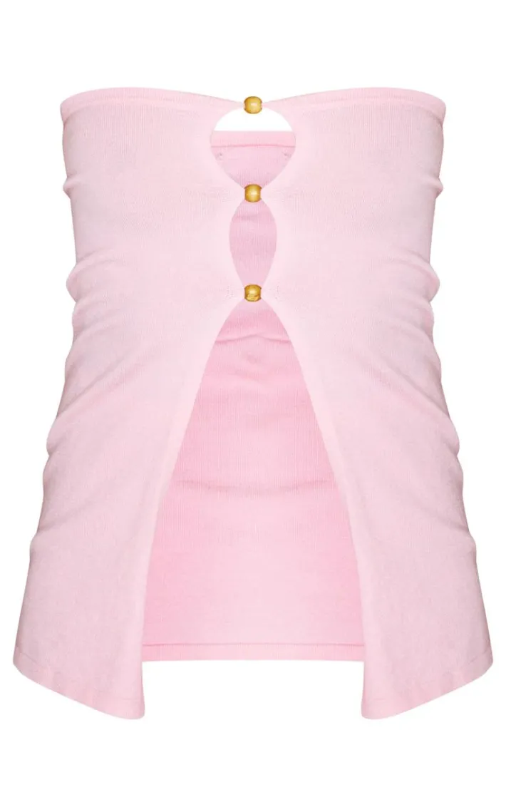 Add a pop of pink into your weekend wardrobe with this petite baby pink knitted bandeau open front top. This top is brought to you in a baby pink knitted material with a bandeau design and an open front, what’s not to love? This top is calling your name. Style this with the matching mini skirt, high heels and accessories for a look like no other.