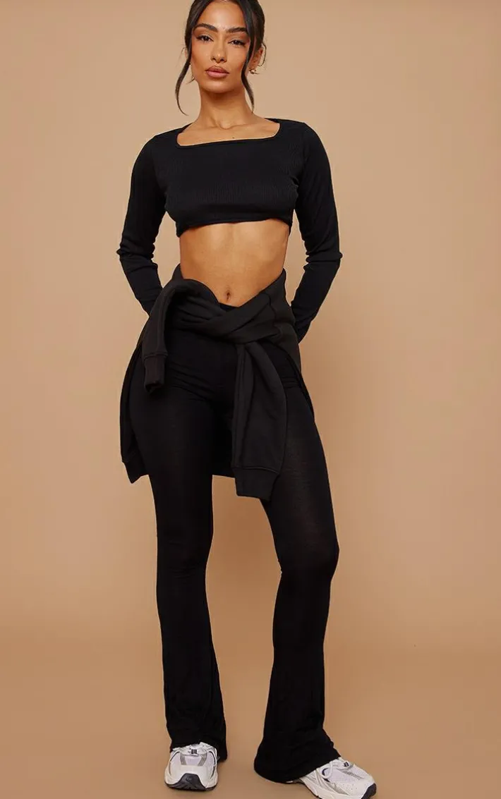 These flares are perfect for dressing up or down. Featuring a black jersey material with an elasticated waistband and a flared fit. Team these with a crop top and barely-there heels for a night out.
