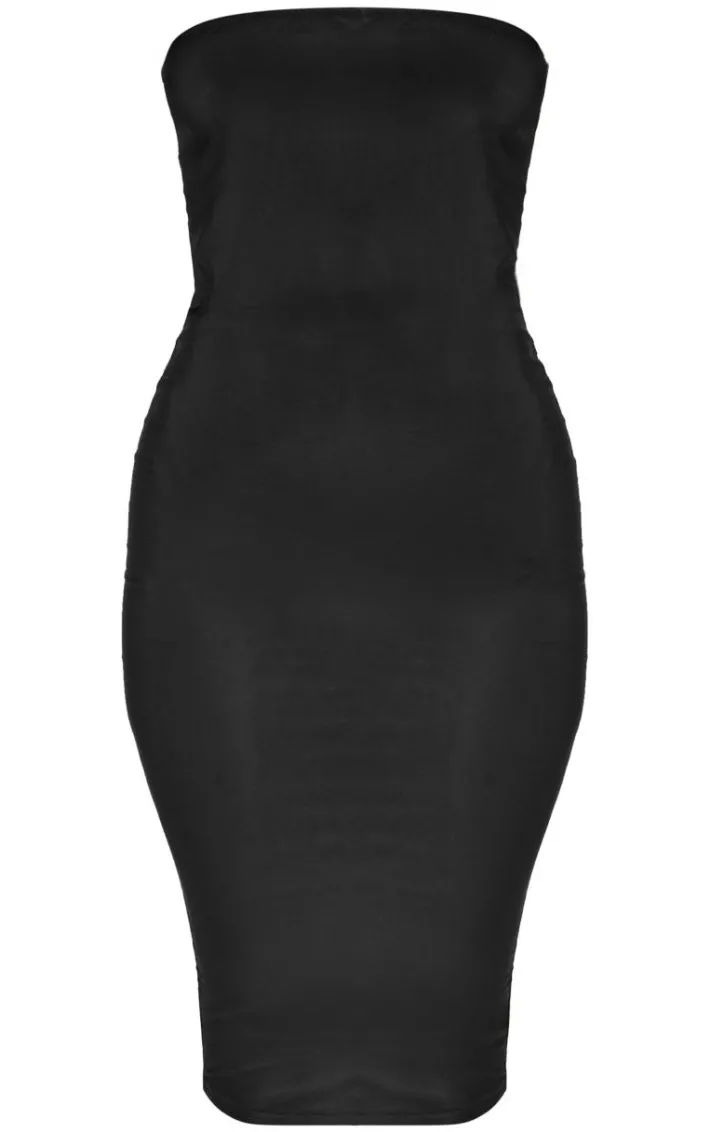 We’re loving this simple midi dress for any occasion. Featuring a black jersey material with a bandeau neckline and a midi length, team it with court shoes and a leather coat for a look we’re obsessing over.