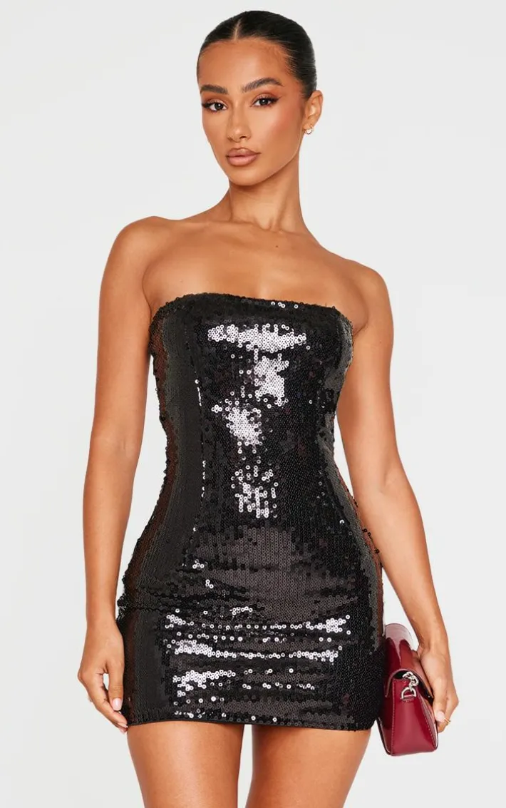Take a chance on this petite black bandeau open back sequin mini dress for a look that won’t go unnoticed. Brought to you in a classic black shade, with a bandeau design, open back detail and sequin finish, what’s not to love? Simply style with minimal accessories and a pair of heels to complete the look.