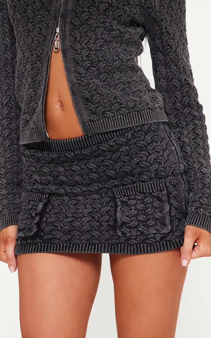 Keep your look elevated with this petite black cable knit pocket mini skirt. Brought to you in a black cable knit material with a pocket detail and a mini length, what more could you want? team with the matching top and your fave accessories for an Insta worthy finish everyone will be talking about.