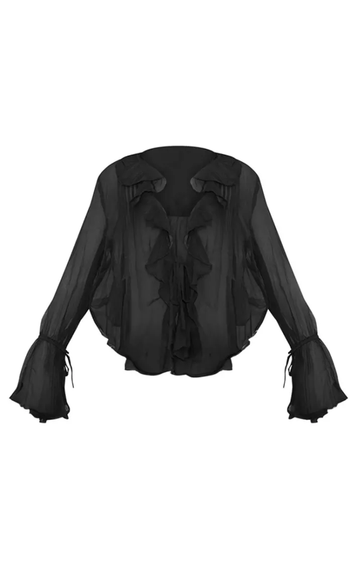 Turn heads for all the right reasons in this petite black chiffon ruffle tie detail top. Brought to you in a black hue chiffon material with a ruffle design and tie detail, this top is a must have. How can you resist? Style with denim shorts, black strappy heels and your fave accessories to steal all the stares. It’s a yes from us.