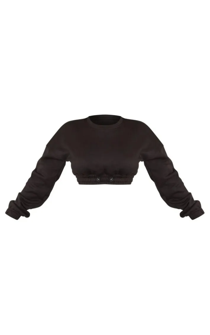 Take those chilled days on in style with these petite black crop elasticated sweat top. Brought to you in a black hue sweat material with an elasticated waist design and a cropped fit, what’s not to love? Keep it casual and pair this petite top effortlessly with the matching sweatpants, heels and simple accessories for a look that is perfect for those on-the-go days and beyond.