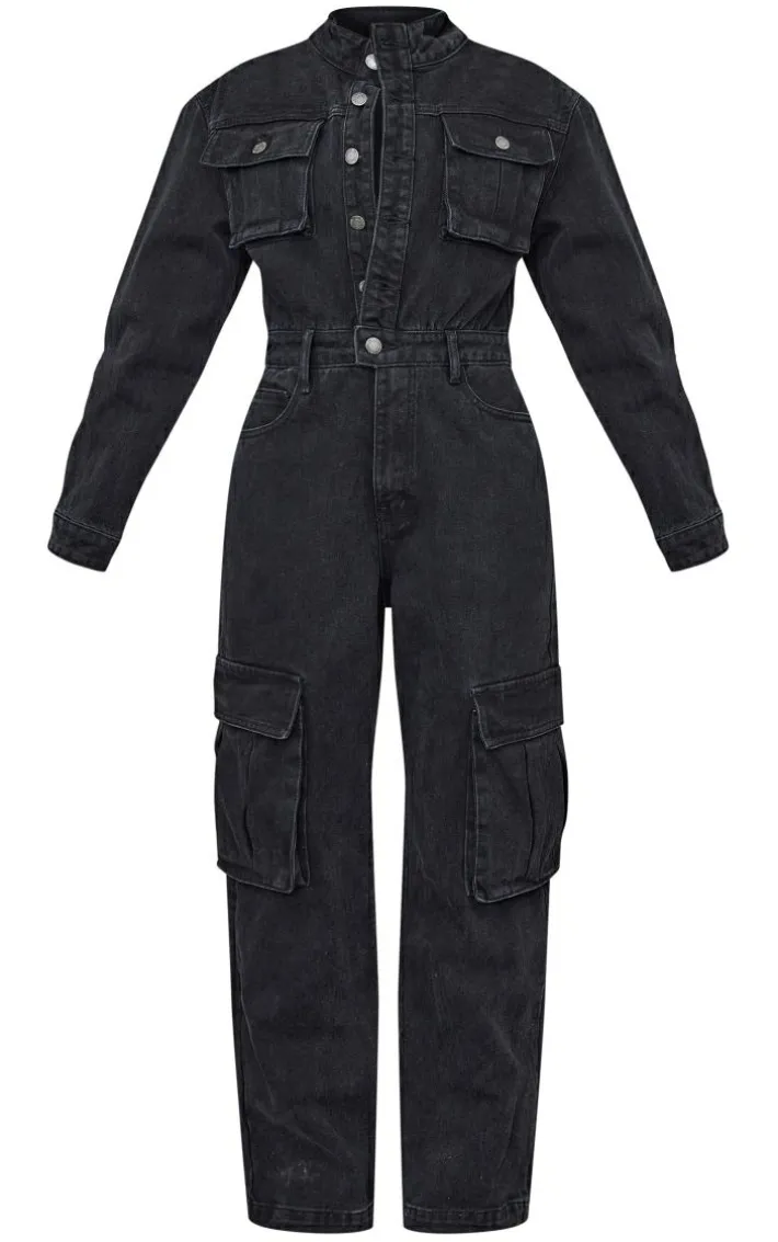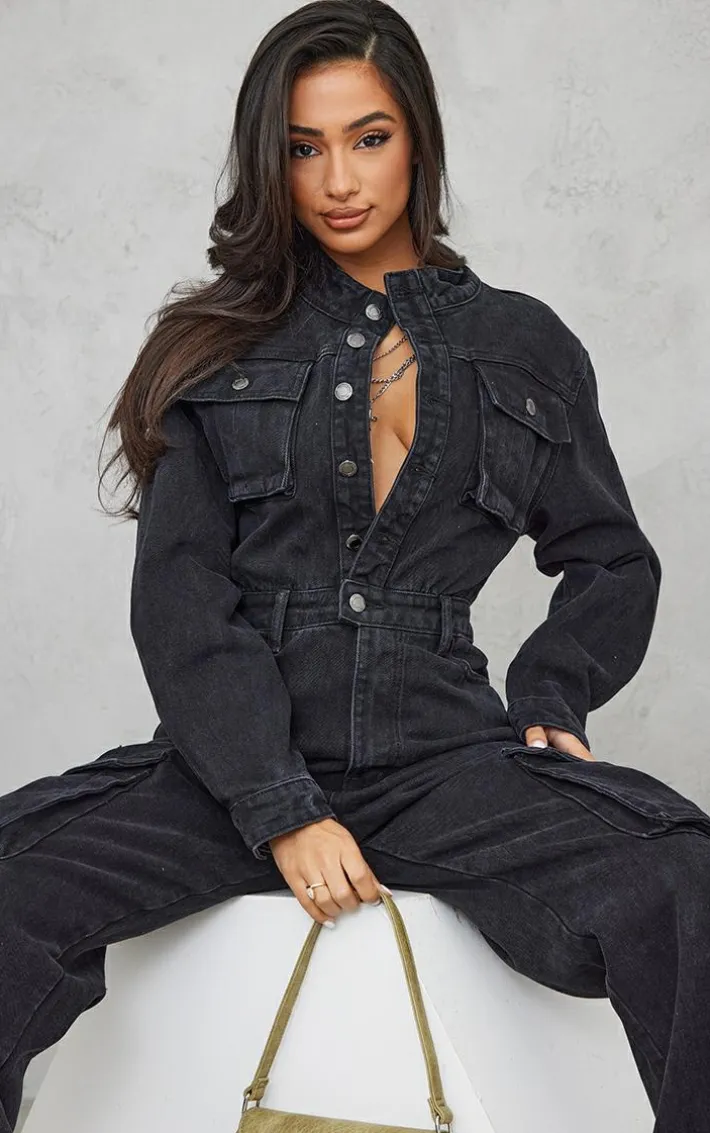 Add some chic feels to your look this season with this petite black denim cargo wide leg jumpsuit. This jumpsuit is perfect for any upcoming event. This jumpsuit is made from a black denim material with a wide leg fit what’s not to love? With a cargo design, you are sure to get noticed in this. Team with some clear heels and a cute shoulder bag for a finished look we are obsessed with.
