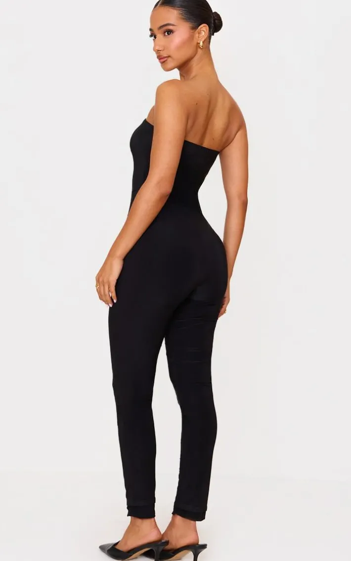 Show off your shape in this petite black double layer bandeau straight leg jumpsuit. Brought to you in a black double layer material with a bandeau design and a straight leg fit, you are sure to turn heads for all the right reasons. Team this petite black jumpsuit with a pair of court heels and a statement bag for a look everyone will be obsessing over.