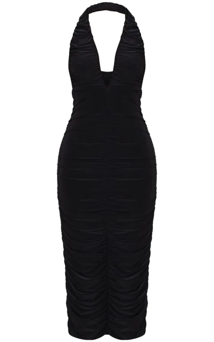 Look all kinds of chic in this petite black double slinky plunge midi dress. Brought to you in a black hue double slinky material with a plunge neckline, this midi dress is all the new you need. Style with slip on heels and simple accessories for a look like no other.