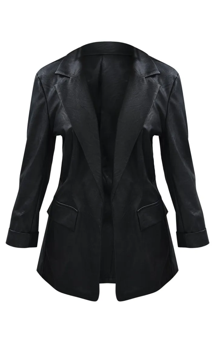 You are sure to steal all the stares with this unreal blazer. Featuring a black faux leather material with an oversized design and a comfy fit, we are in love. Pair with your outfit of the evening for some extra attitude and wear with confidence.