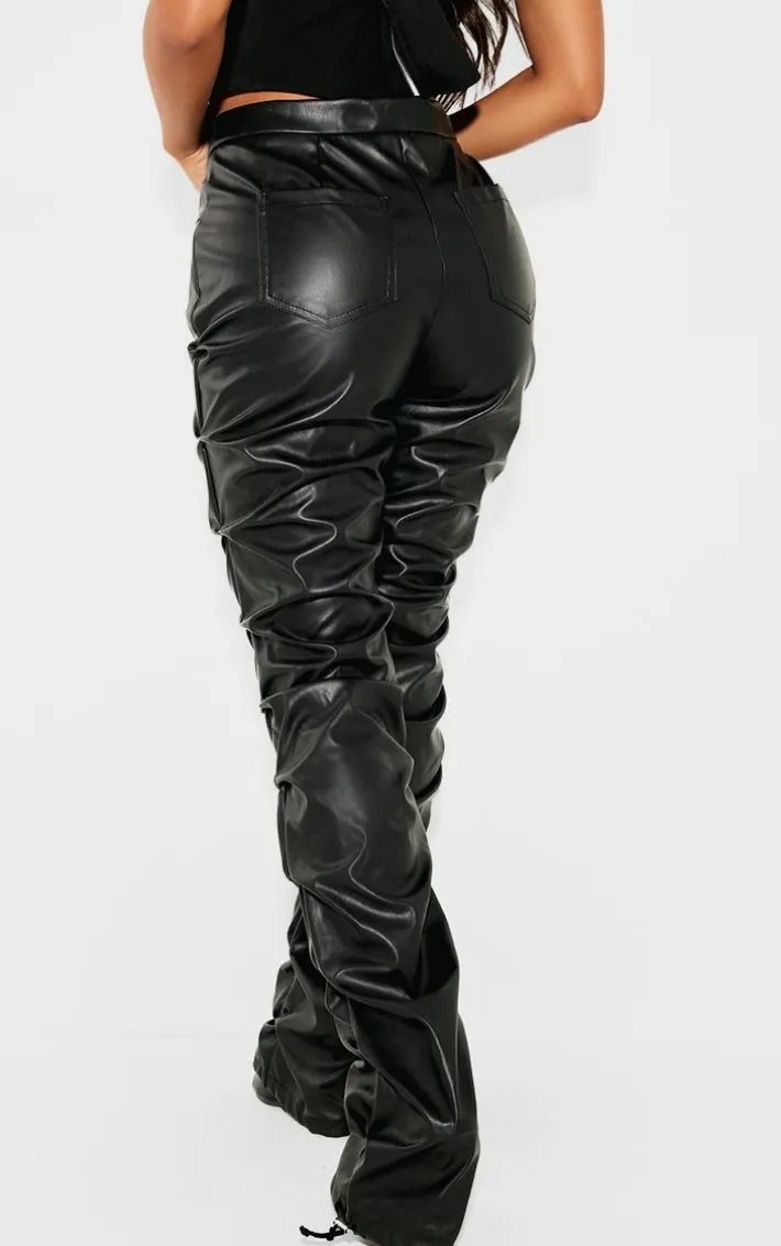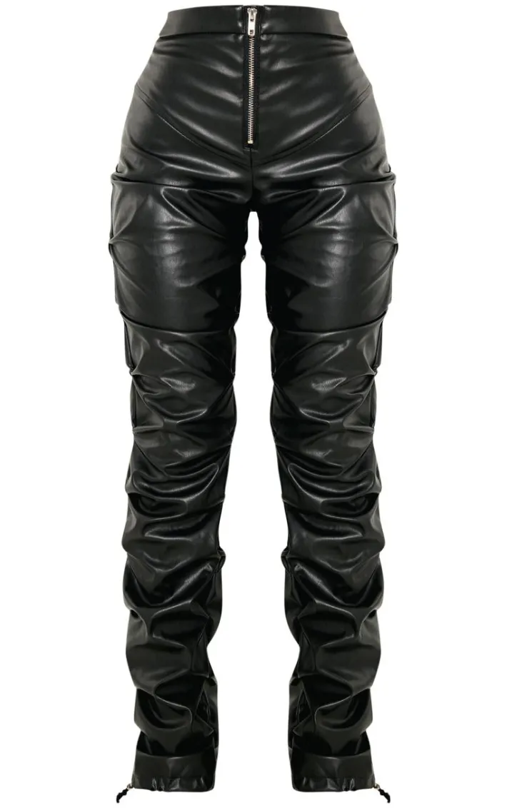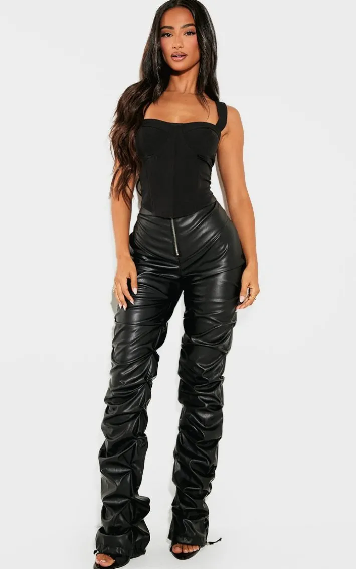 Keep it effortlessly chic in these petite black faux leather zip front ruched detail skinny pants. Brought to you in a black faux leather material with a zip front and a ruched detail, what more could you want? These skinny pants are the perfect addition to your day to night looks. Team with your highest heels and a corset top to complete the look.