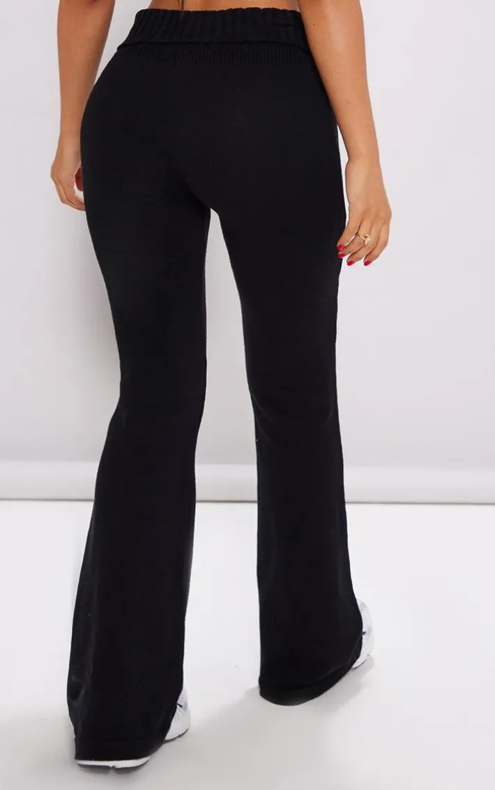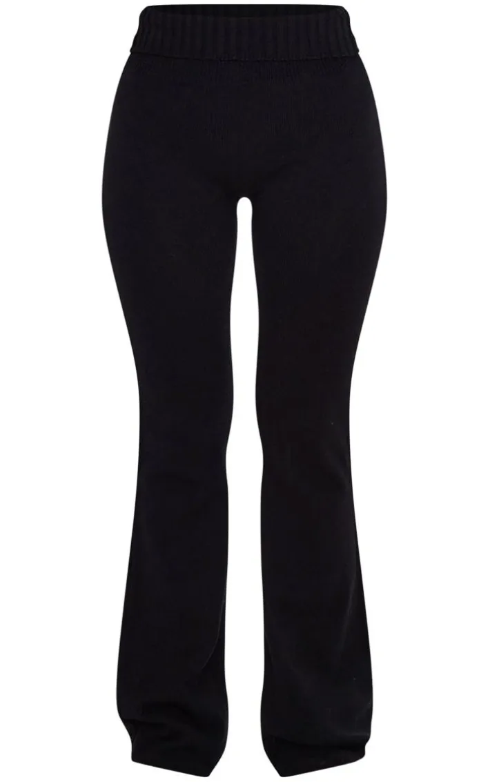 Inject some seriously luxe vibes into your everyday wardrobe with these petite black knitted fold-over waist flared pants. Made from a black knitted material with a fold-over waist and flared fit, how could you say no? These petite pants are a must-have for your off-duty days, whether you’re running errands or chilling out at home. Simply add the matching crop top and chunky sneakers to take the stress out of styling.