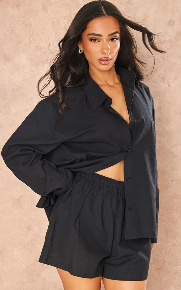 This petite black linen look button-up shirt is here to banish any of your what to wear dilemmas. Brought to you in a black linen look material with a button up front, we can’tget enough. From start to finish this shirt will have you looking totally on-trend. For a next-level look simply style with the matching shorts, sandals and accessories for a look that will have you setting trends wherever you step foot.