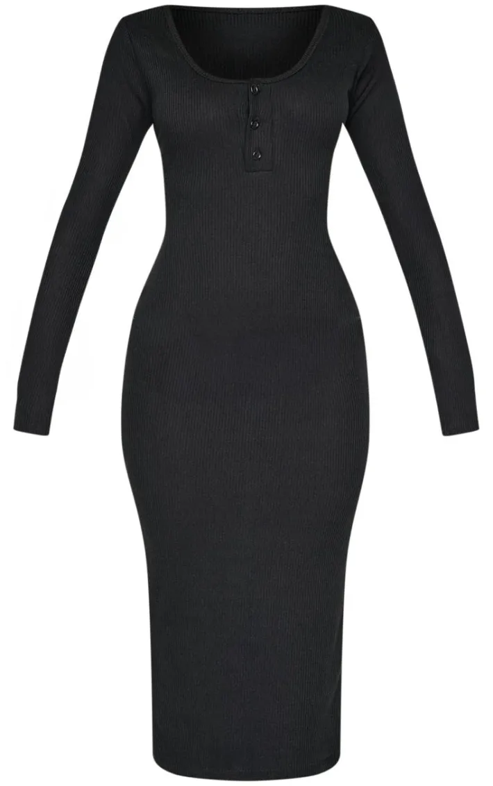 Show off your shape with this petite black long sleeve brushed rib button midi dress. Brought to you in a black brushed rib material with a long sleeve design and a ruched detail, what’s not to love? This midi dress won’t let you go unnoticed. Style with heels and your fave accessories to turn heads for all the right reasons.