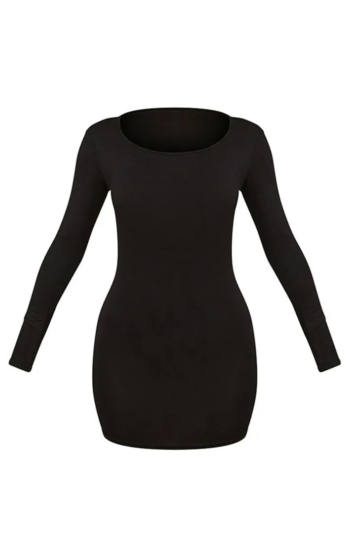 This little black dress is perfect for dressing up or down. Featuring a black jersey material with long sleeves and a figure-hugging fit. Style this with sock boots and a statement bag to complete the look.