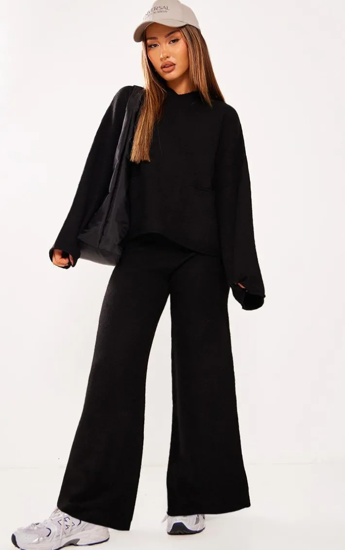 Take your everyday look to the next level with this petite black luxe knit wide leg pants perfect for your everyday styling and beyond. Brought to you in a black luxe knit material with a wide leg fit, we simply can’tget enough. With It’s versatile style these pants are sure to be your new go-to. Style with the matching sweater, box-fresh kicks and accessories for a look that we can’tget enough of.