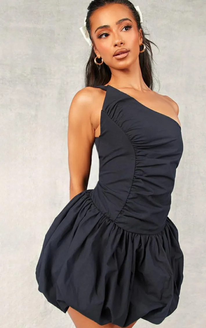 Turn heads for all the right reasons in this petite black one shoulder ruched puffball mini dress. Brought to you in a black hue ruched material with a one shoulder detail and puffball design, this mini dress is everything you need and more. Pair this dress with your go-to heels and statement shoulder bag for a glam finish we can’t get enough of this season.