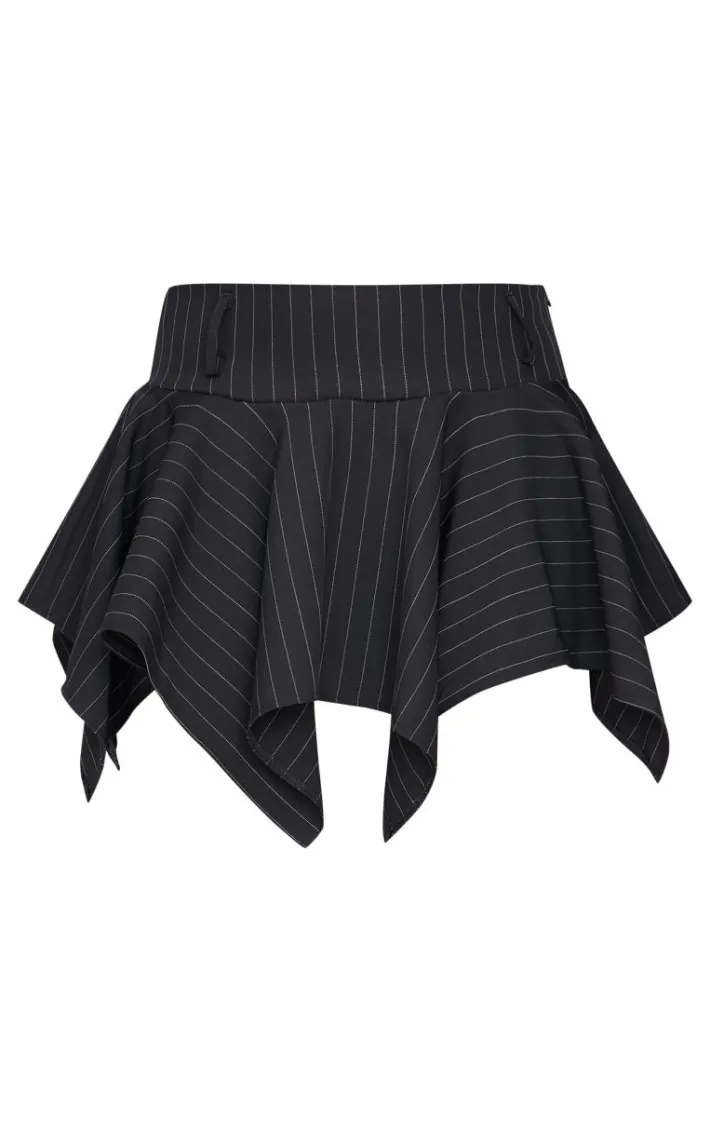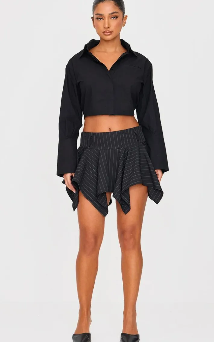 Set trends with this petite black pinstripe asymmetric hem micro mini skirt. Brought to you in a black material with a pinstripe design and an asymmetric hem, what more could you want? This micro mini skirt is sure to have hearts raving no matter what. Style with a cropped shirt and a pair of heels for a look we are obsessing over.