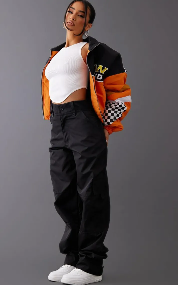 Take your off-duty look to new heights with these petite black shell straight cargo pocket sweatpants. These comfy sweatpants are made from a black hue with a shell material for an everyday look we are loving. With a straight leg design, what’s not to love? These cargo joggers pair perfectly with a statement bomber jacket and some fresh white sneakers for an effortlessly chilled look we are loving.