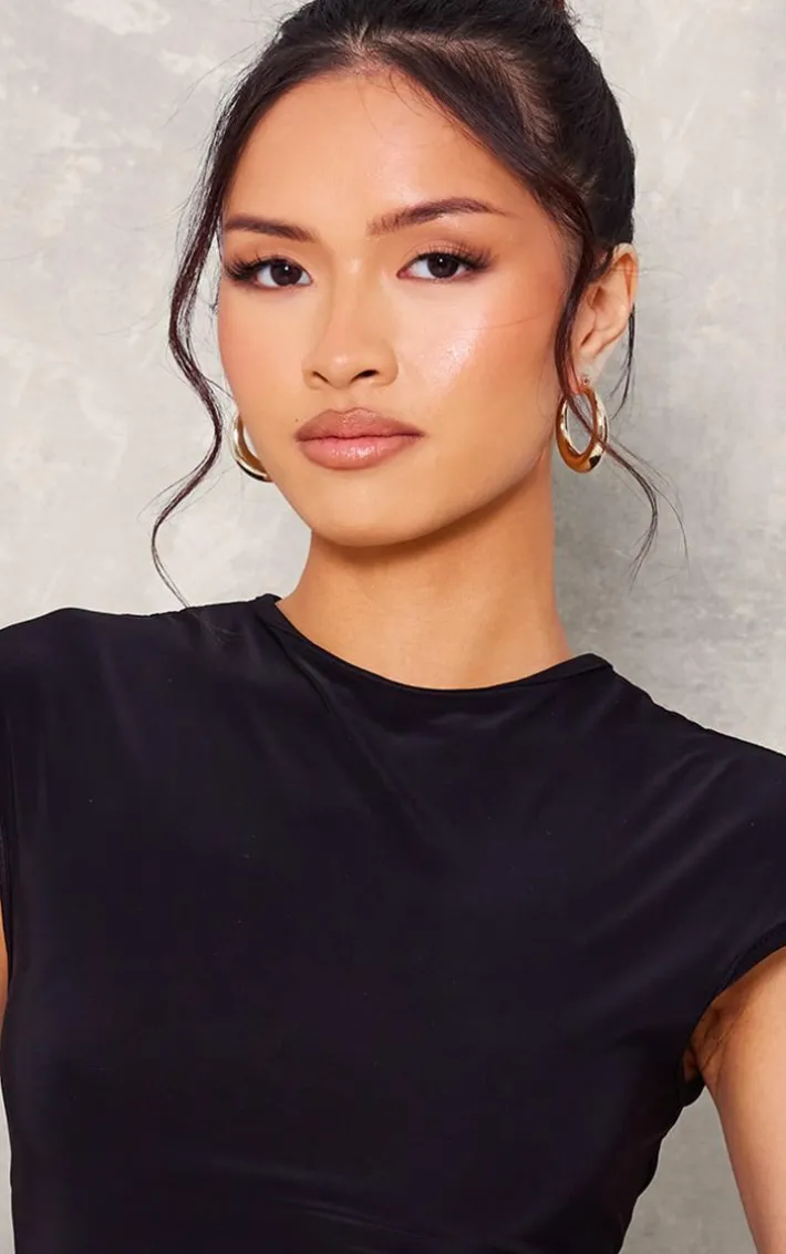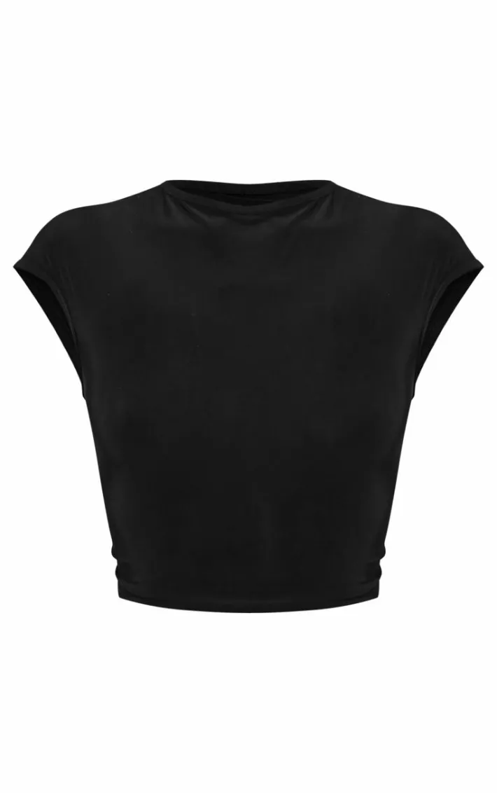 Upgrade your basis wardrobe with this petite black slinky cap sleeve crop top. Brought to you in a black slinky material with a cap sleeve detail, this crop top is a yes from us. Steal all the stares by styling with a denim mini skirt and clear heels for a luxe look.