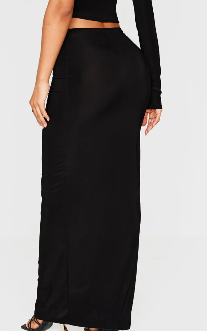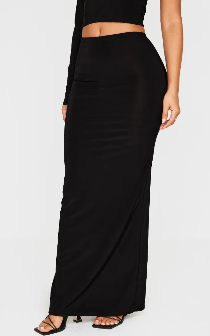 Take on your weekend the right way with this petite black slinky high waist maxi skirt. Made from a black slinky material with a high waist fit and a maxi length, this is everything we’re loving and more. This skirt is sure to hug you in all the right places. To complete the look style this seamlessly with your go-to accessories, the matching crop top and a pair of heels for a look that will secure you all the likes.