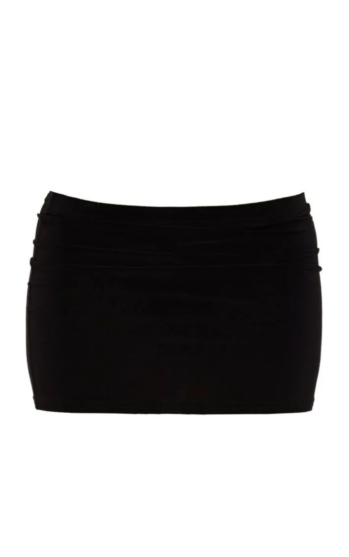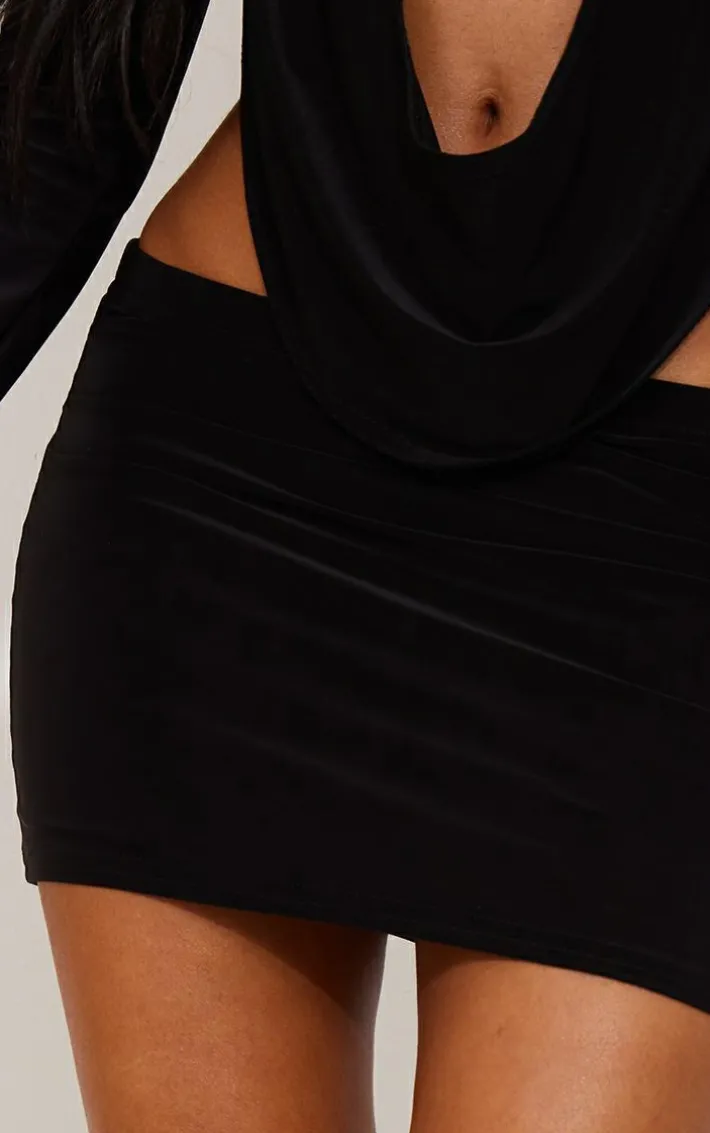 Upgrade your weekend wardrobe with this mini skirt. Featuring a black slinky material with a low rise design and a mini length, we’re obsessed. Team with the matching top, high heels and statement accessories for a chic finish.