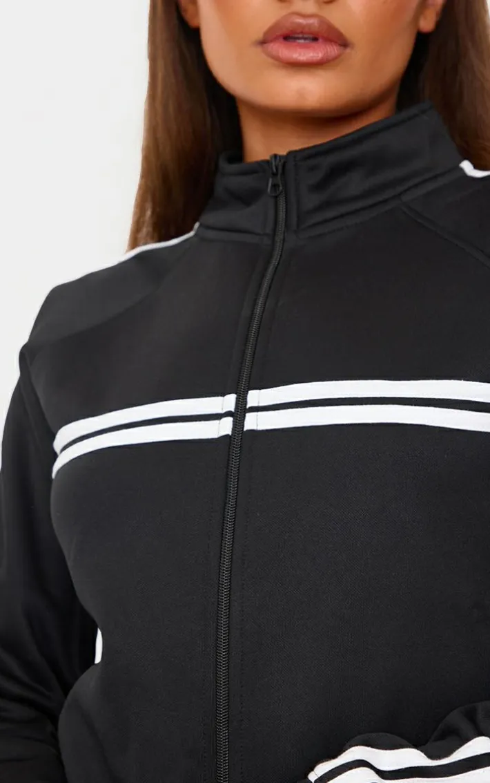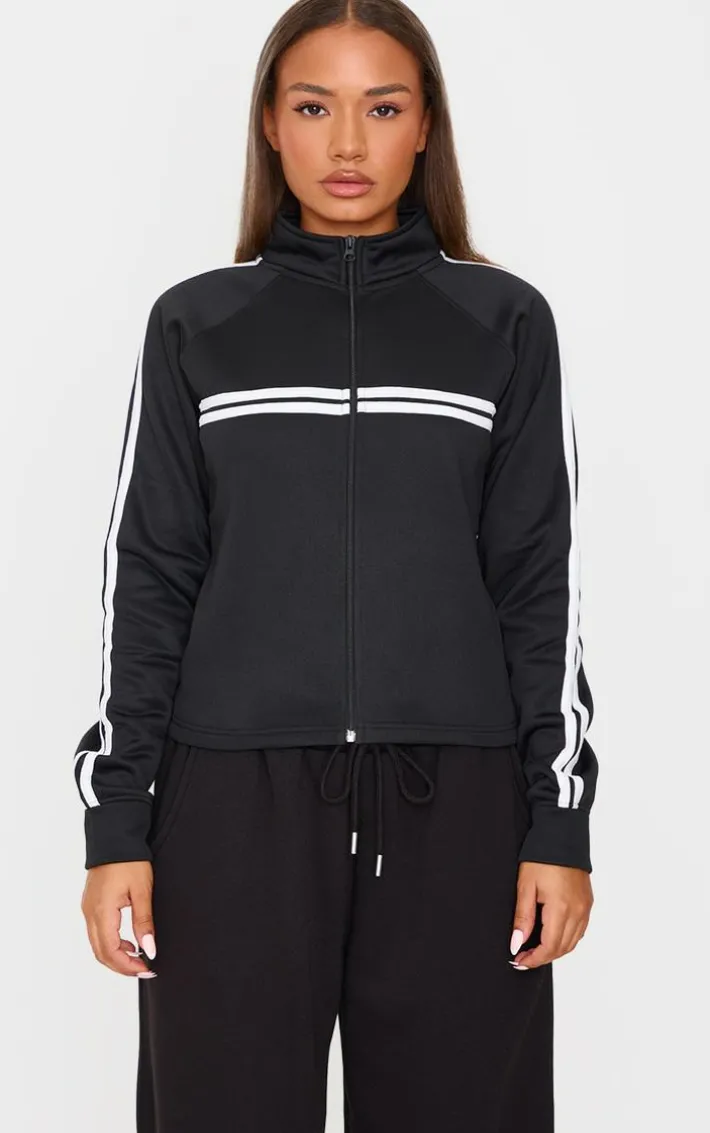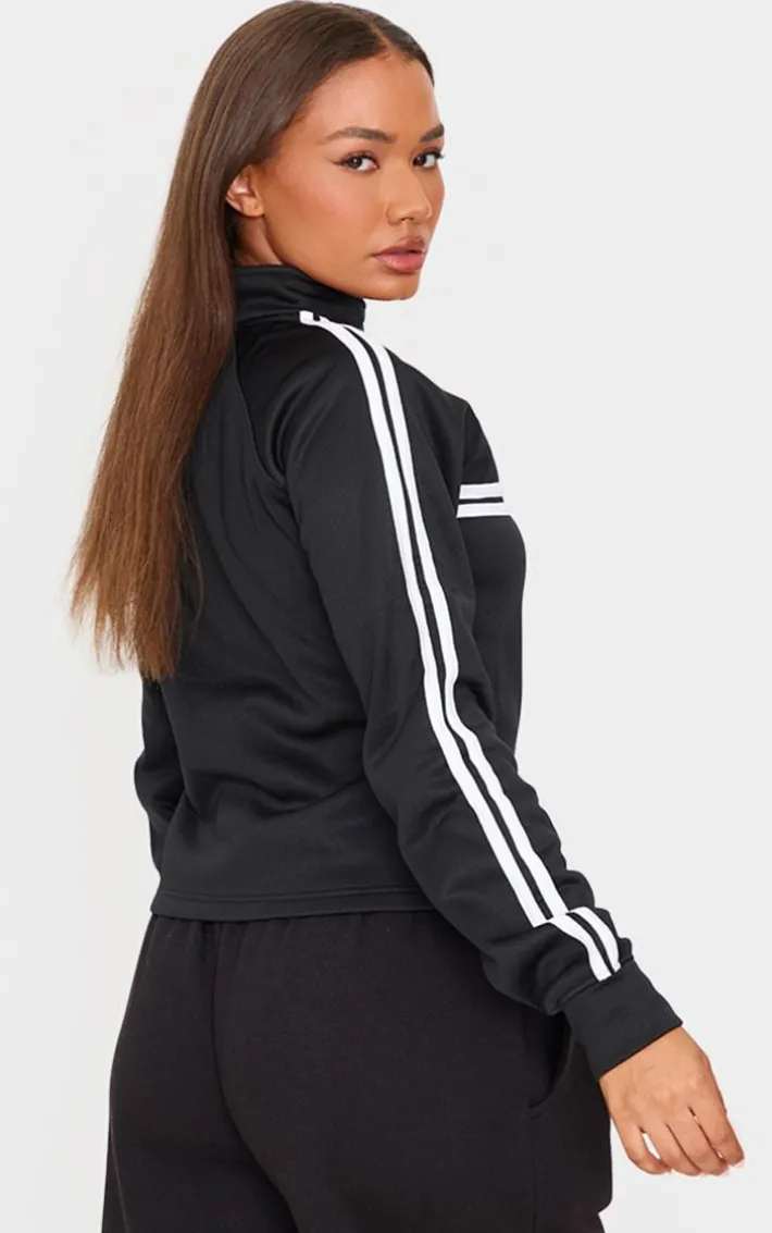 Reach for this petite black stripe detail zip up track jacket. Brought to you in a versatile black shade, with a stripe detail and zip up feature, your day to day styling has just been made easy. Team with a pair of black sweatpants and sneakers for a chilled finish we’re loving. It’s a definite yes from us.